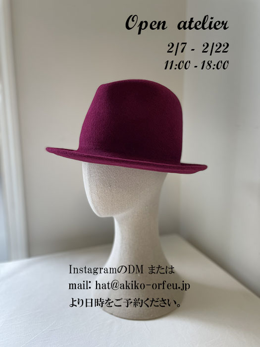 「冬のオープンアトリエ」*秋冬帽子のご購入、試着、オーダーができる機会となります。